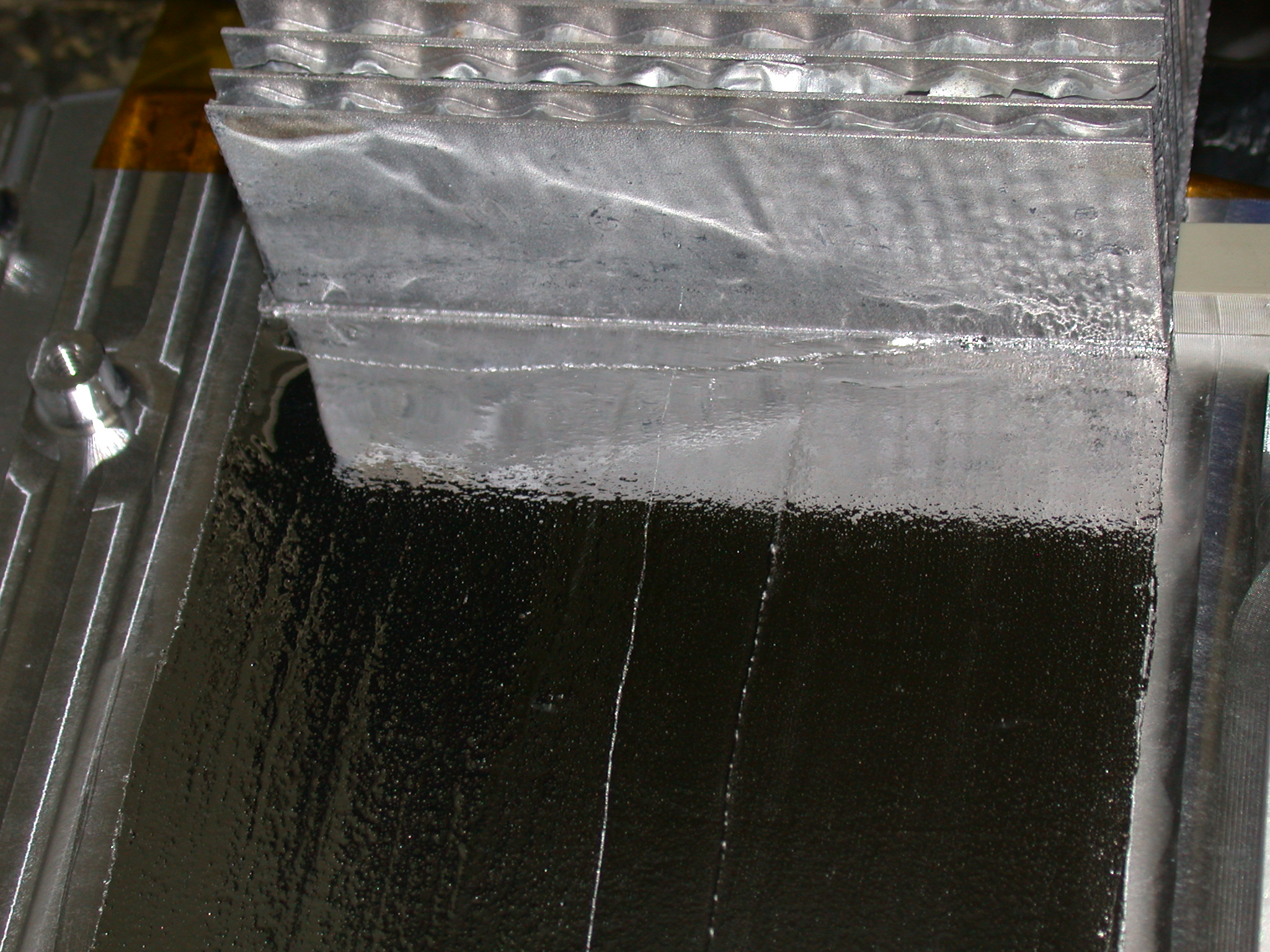 Since the bonding filler metals melt below the base metals, the components being bonded can be entirely heated to the bonding temperatures, provided that temperature does not significantly degrade the form, fit or function of the assembly. Metal bonding heating is normally done via torch, induction, furnaces, and if soldering, hot surface plates and hot air heaters. In these various heating methods, when the metals being bonded reach the melting temperature of the bonding filler metals (e.g., Cu-Ag, Sn-Ag, NiCrBSi, TiZrCiNi, Ag, In, Sn-In, Au, Au-Sn, etc.) the inserted fillers melt, flow and wet (provide no oxides on the metals). Generally chemical fluxes are used to assure the molten filler metals can wet the metals being bonded. The fluxes are acids and/or caustics that can disrupt oxide films and carry them away from the surfaces being bonded. When bonding smaller point and narrow joints, the melting and flow of the filler metals push fluxes from the joint. In large surface bonding however, the fluxes cannot easily get to the outside edges of bonded components and can become trapped in the bonded interfaces. The development of active brazes and now active solders such as S-Bond alloys
